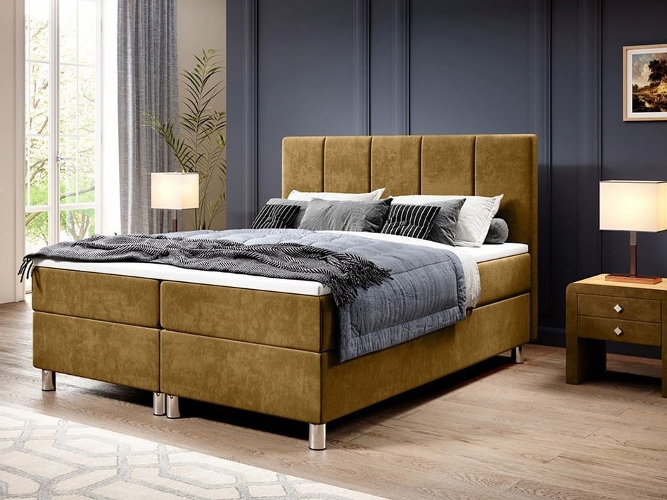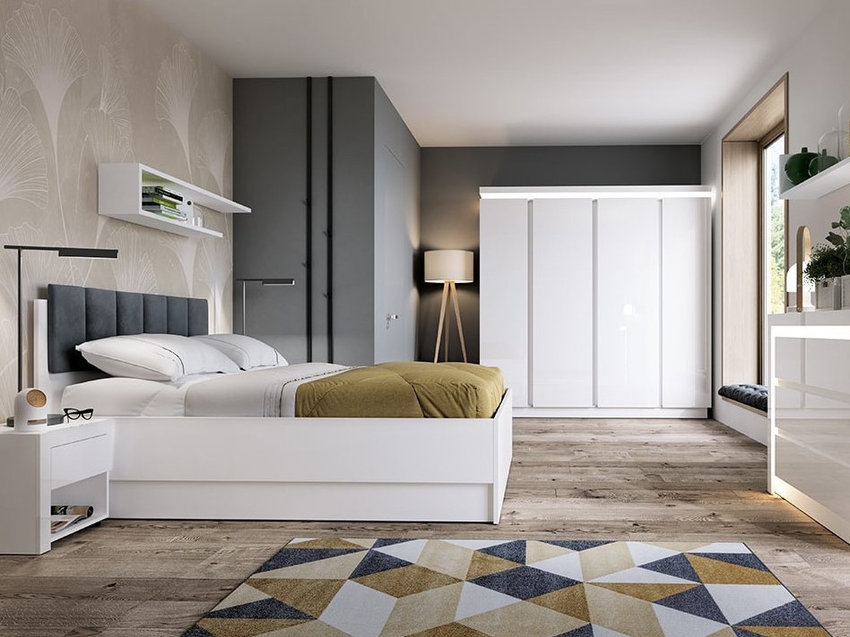 Tai vienas populiariausių šiuolaikinių pasirinkimų. Tai uždaros konstrukcijos lova, kurios pagrindas gaminamas iš tvirtų baldinės plokštės elementų. Toks sprendimas suteikia didelę dizaino laisvę ir leidžia kurti tvarkingą, harmoningą miegamojo erdvę.