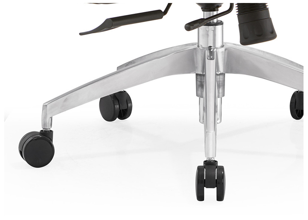 Sėdimoji dalis aptraukta tinkleliu ir kvėpuojančiu membraniniu audiniu, o kėdės rėmas pagamintas iš plastiko ir metalo.