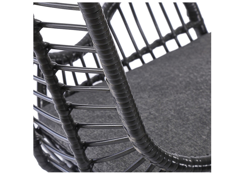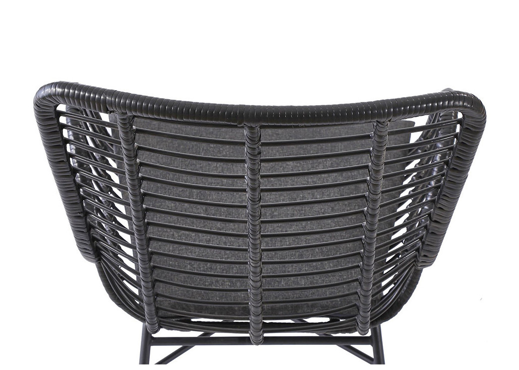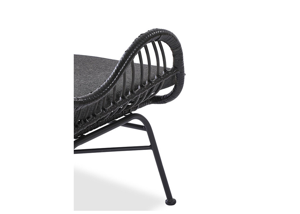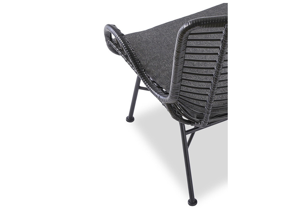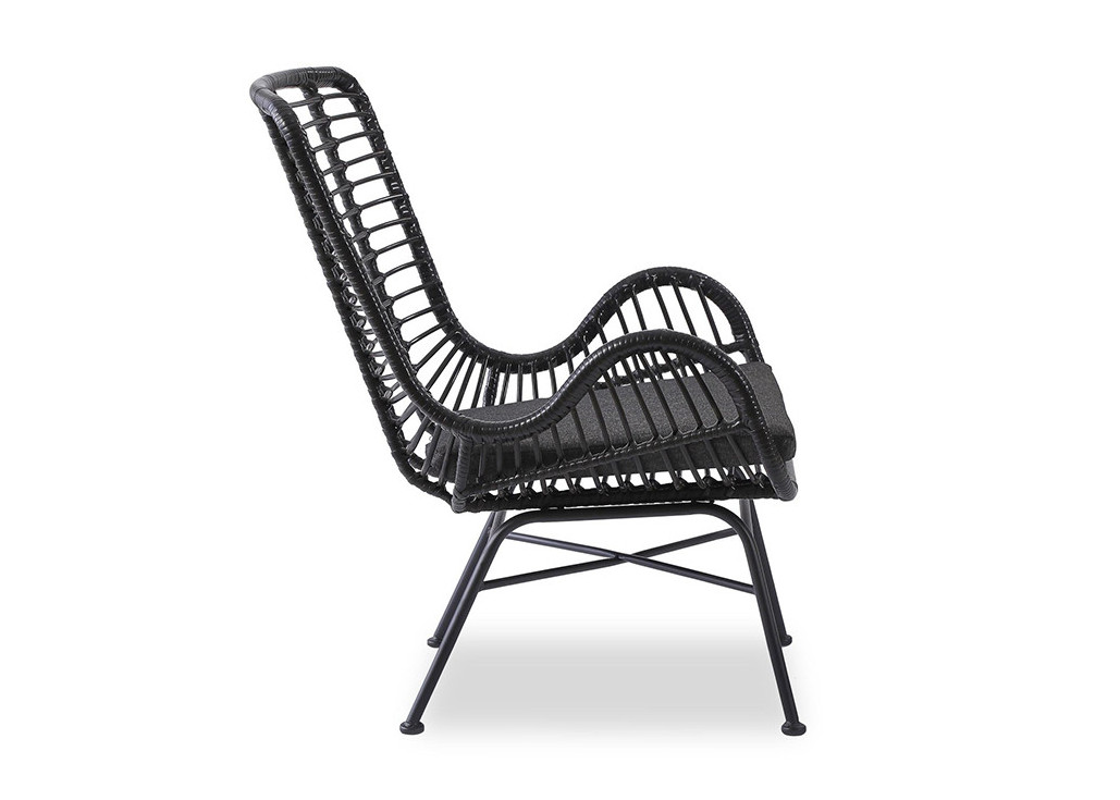Skandinaviško dizaino subtilus juodos spalvos fotelis Ikaro 2. Fotelis pagamintas iš metalo rėmo, apsuktas ratanu.