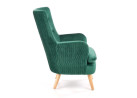 Žalios spalvos elegantiškas ypatingai patogus veliūrinis fotelis Ravel, kuriame pasijusite tarsi tikri karaliai! Fotelis su tvirtomis juodomis medinėmis kojomis.