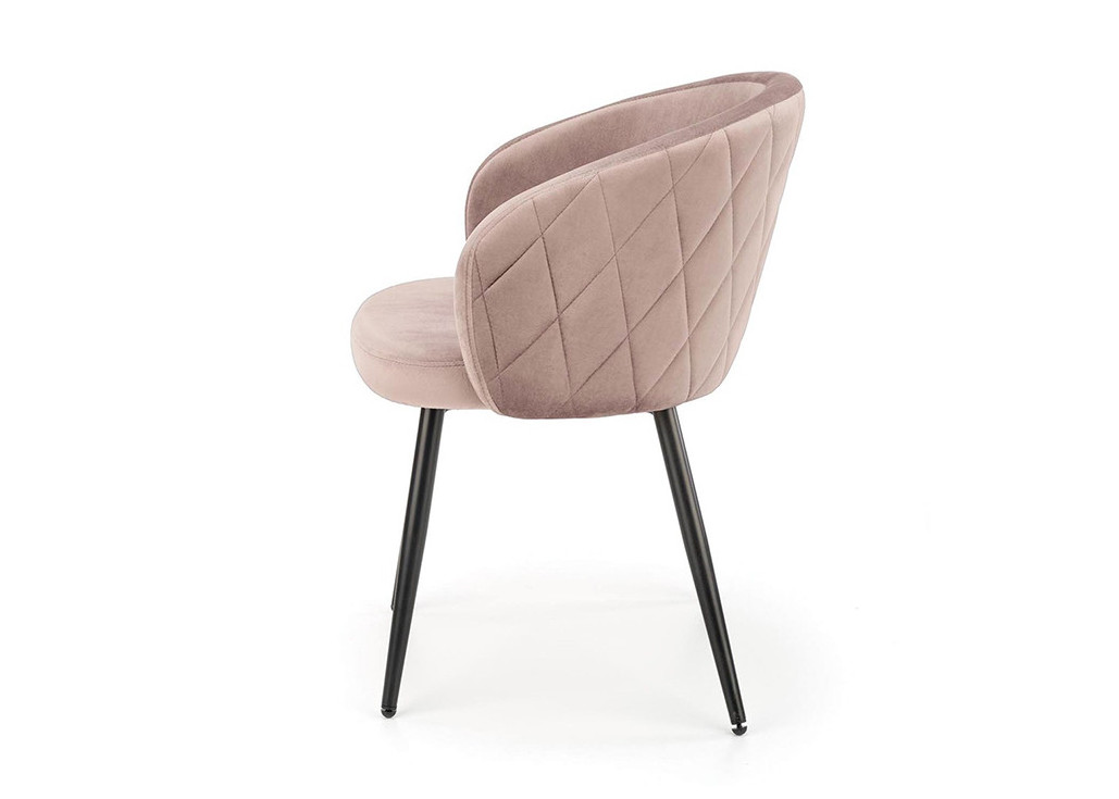 Moderni ir minkšta smėlio spalvos kėdė K430 su metalinėmis juodomis kojelėmis.