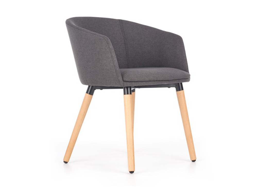 Pilkos spalvos kokybiška patogi ir jauki valgomojo kėdė K-266. Kėdė su natūralios medienos kojomis.