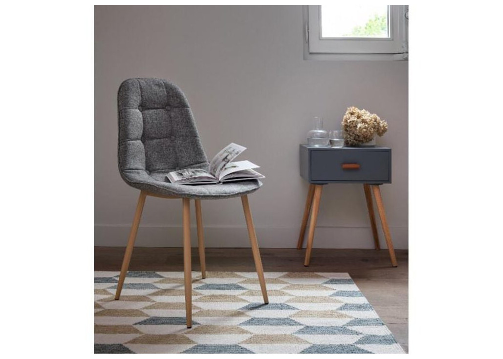 Kėdės kojos, pagamintos iš tvirto plieno su ąžuolo spalvos apdaila, užtikrina stabilumą, ilgaamžiškumą ir puikiai dera su neutraliu audiniu. Šios natūralios spalvos leidžia kėdei lengvai įsilieti į įvairius interjero stilius – nuo modernaus iki klasikinio ar skandinaviško.