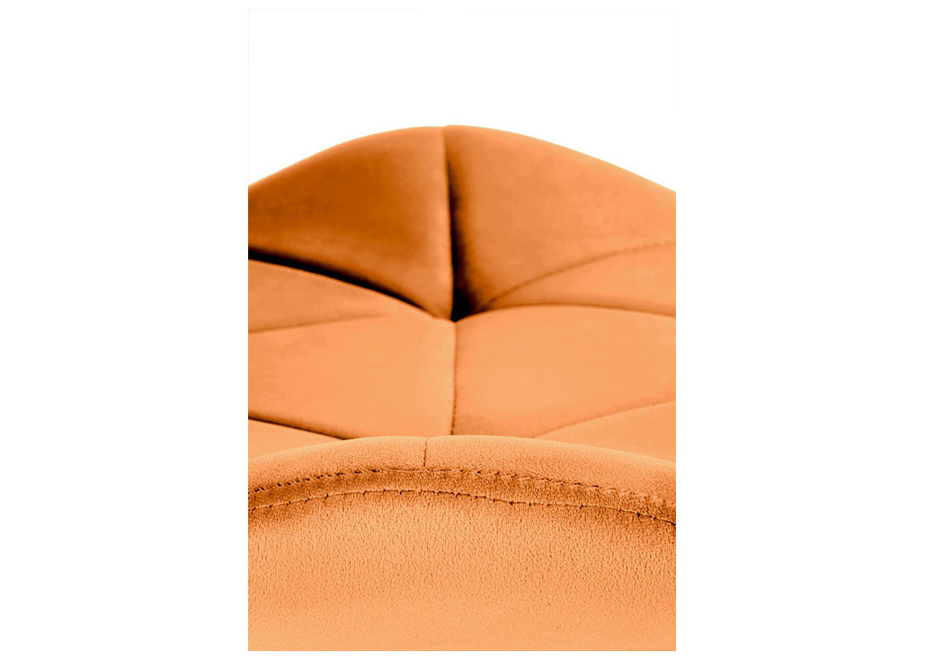 Cinamono spalvos veliūrinė modernaus dizaino kėdė K453. Išskirtinė kėdės forma ir trikampio dygsniuoti raštai suteikia baldui unikalumo. Kėdė aptraukta kokybišku veliūriniu audiniu, o kojelės pagamintos iš milteliniu būdu dažyto metalo.