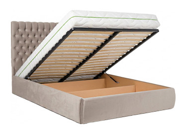 ✔ Lovos pakėlimo mechanizmas - dujiniai amortizatoriai, kurie leidžia lengvai pakelti groteles su čiužiniu tam, kad pasiektumėte patalynės dėžę.