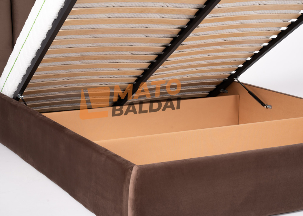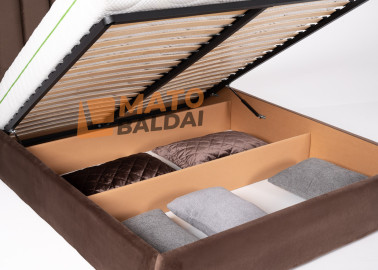 ✔ Lovos pakėlimo mechanizmas - dujiniai amortizatoriai, kurie leidžia lengvai pakelti groteles su čiužiniu tam, kad pasiektumėte patalynės dėžę.