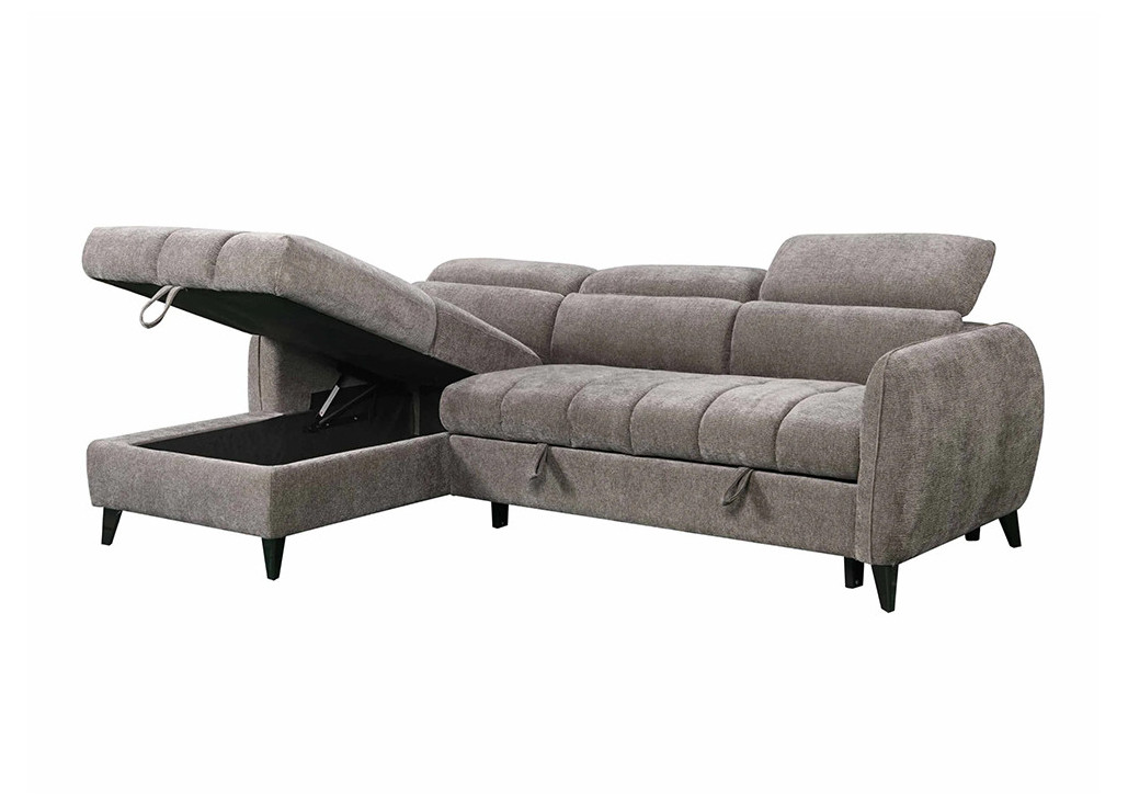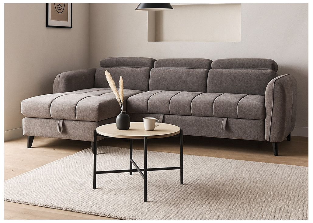 Minkštas kampas Rovera – tai stilingas, modernus ir itin patogus baldas, puikiai tinkantis tiek erdvioms svetainėms, tiek jaukiems mažesniems kambariams. Kampas turi miegojimo funkciją ir patalynės dėžę