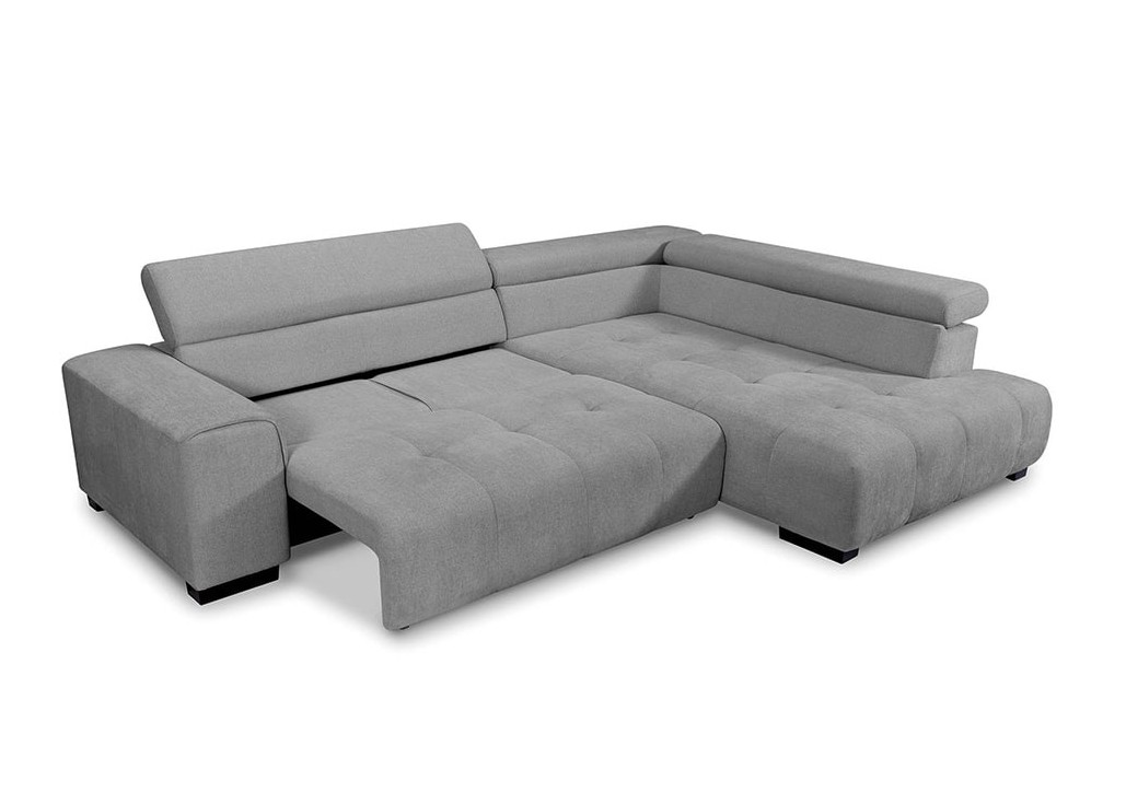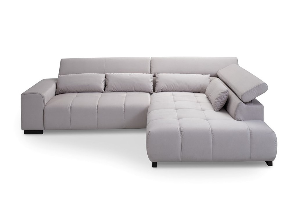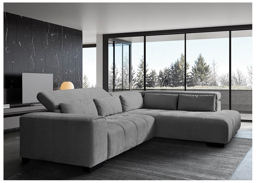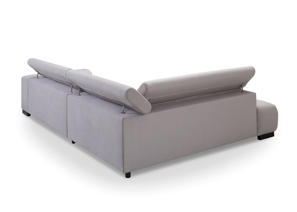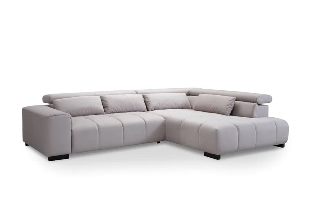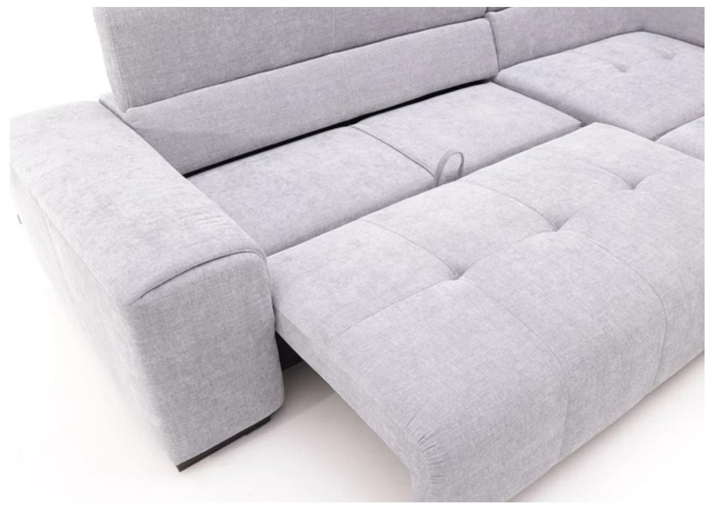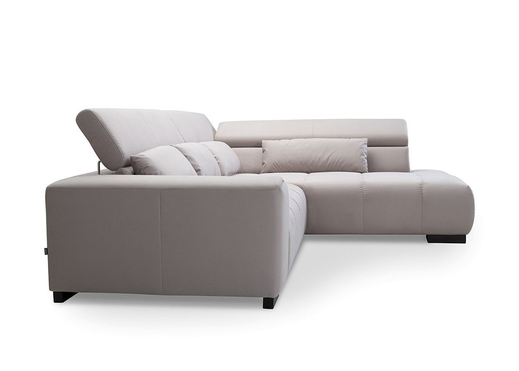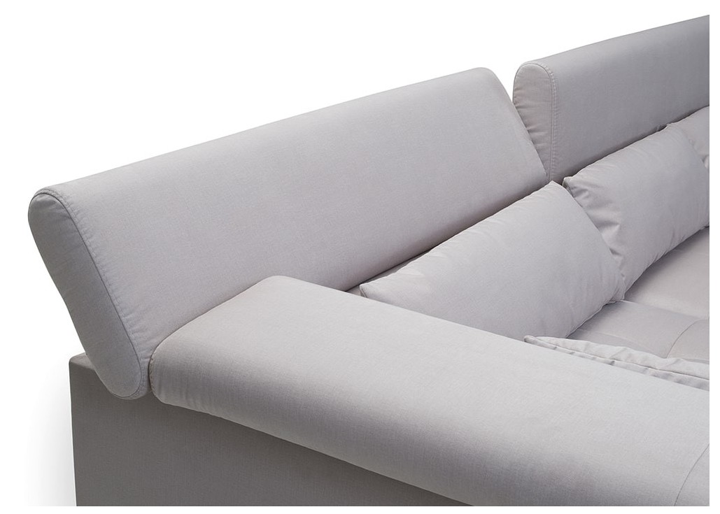 Elegantiškas šiuolaikiško dizaino minkštas kampas Positano su reguliuojamomis galvos atramomis ir miegojimo funkcija.
