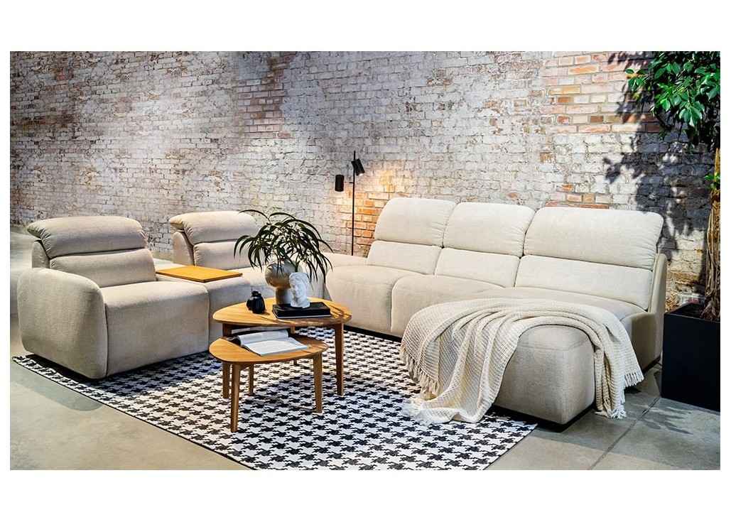 Tarp sėdynių įrengtas nedidelis staliukas su mediniu viršumi ant kurio patogiai pasidėsite nešiojamąjį kompiuterį, arbatos puodelį ar lėkštelę su užkandžiais.