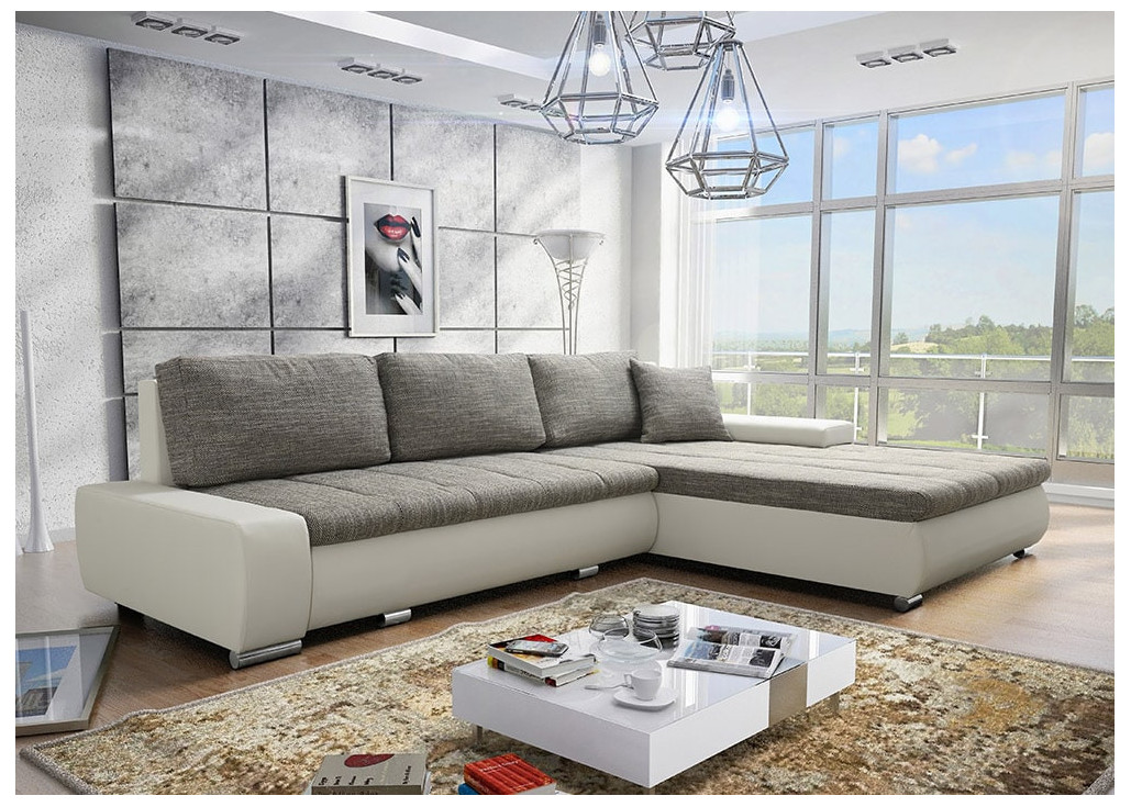 Modernaus dizaino, prabangus ir funkcionalus minkštas kampas ROB-TOS su plačia miegamąja dalimi ir patalynės dėže.
