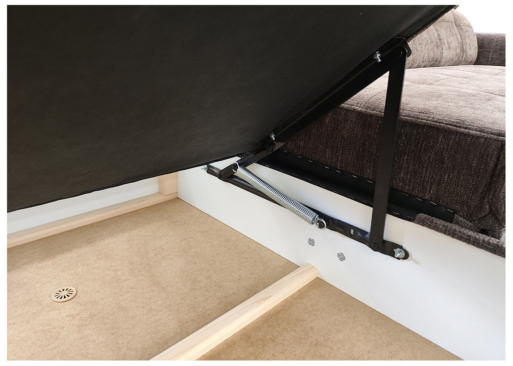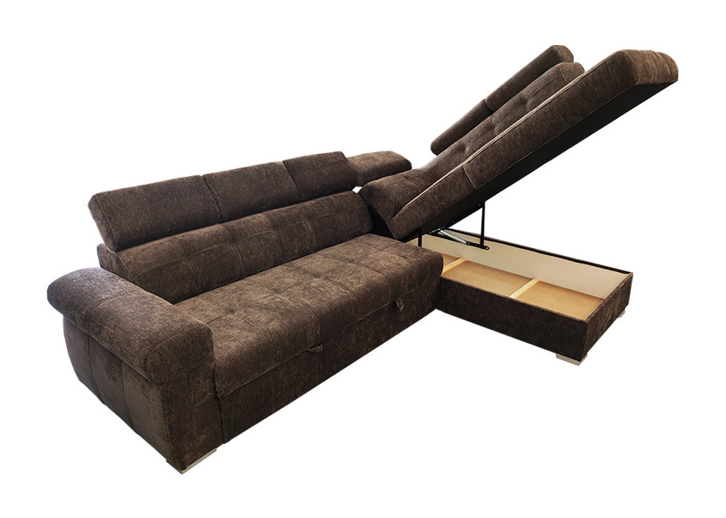 Stilingas, patogus minkštas kampas PYK-ATL su kasdieniam naudojimui tinkama miegojimo funkcija ir patalynės dėže.