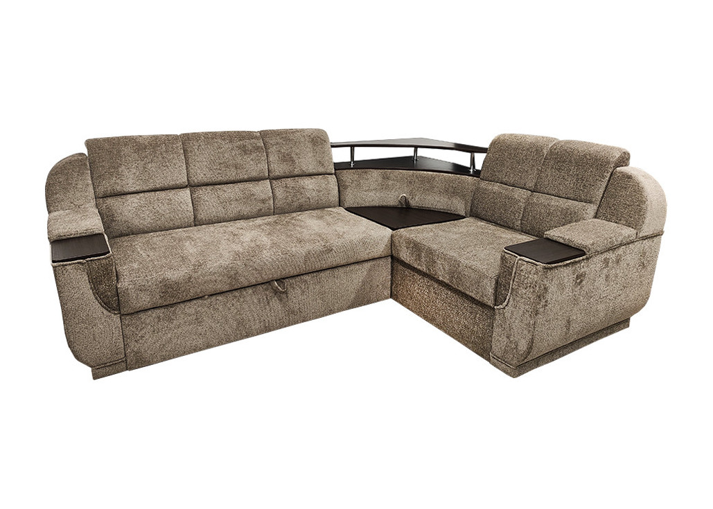 Kokybiškas minkštas kampas KAI-EKS - suteikia maksimalų komfortą. Platūs porankiai, erdvi miegama dalis, patalynės dėžė ir praktiškos lentynos sukuria funkcionalią bei jaukią svetainės erdvę.