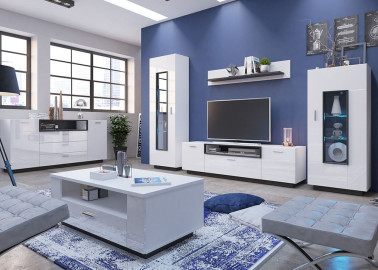 EXT-RAV baldų kolekcija išsiskiria šiuolaikišku dizainu ir subtilia prabanga. Blizgūs balti paviršiai atspindi šviesą, vizualiai praplėsdami erdvę, o kontrastingi juodi rėmeliai suteikia baldams išskirtinumo. Metalinės rankenos ir subtilus LED apšvietimas pabrėžia modernų stilių bei sukuria jaukią atmosferą.