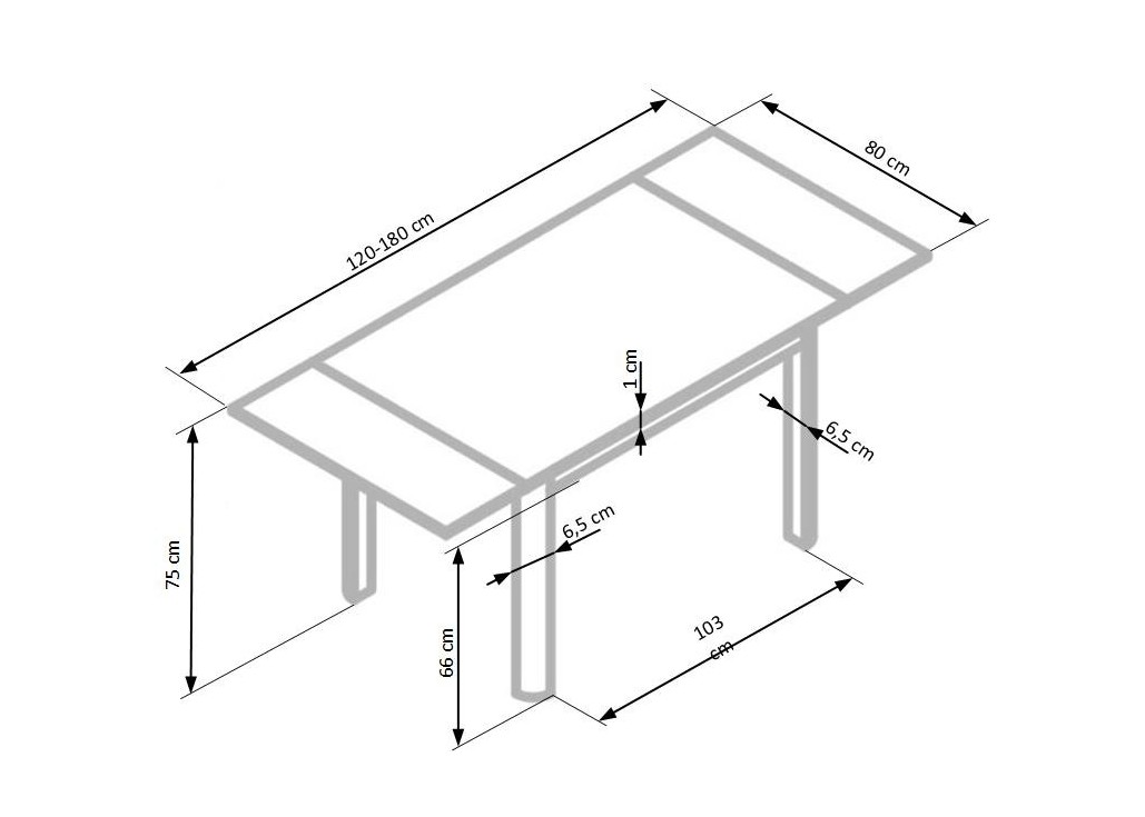 Ištraukiamas valgomojo stalas Alston su stačiakampiu stalviršiu, pagamintu iš smėlio spalvos grūdinto stiklo. Baldo kojos pagamintos iš milteliniu būdu dažyto plieno.