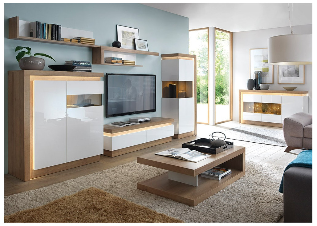 - Modernus dizainas: blizgios baltos spalvos fasadas ir šiltas Riviera ąžuolo atspalvis suteikia baldams elegancijos ir jaukumo, tobulai derėdami bet kokio stiliaus interjere.